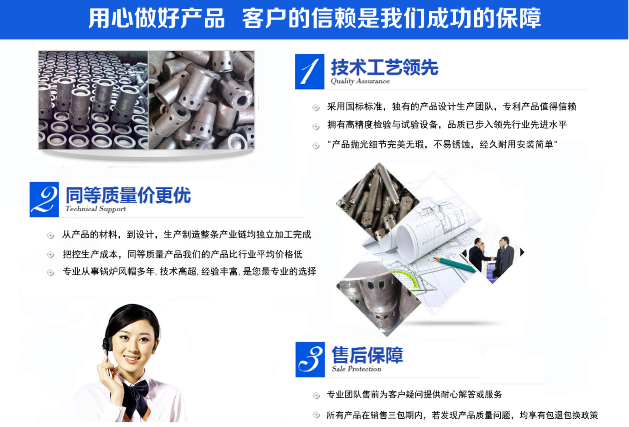 聊城營輝金屬材料有限公司主營鍋爐風帽,流化床風帽,鍋爐鑄鋼風帽,鍋爐風帽廠家等,我廠多年來憑借不斷的行業經驗提升自身的技術實力,在行業中領域達到了一個前所未有的高度,與我廠合作的大中小企業不勝枚舉,我們擁有堅實的技術實力支持,可靠的團隊,使用我廠生產的為您的產品生產安全來保駕護航!  一個合格的產品可以為您帶來質量上的提升,并且保證生產安全更是當中的重中之重。我們更希望客戶能夠選擇我們的產品,讓我們與您共同奮斗?! ∥覀冎铝τ谧鲂袠I的精英,為您解決所有您需要解決的問題!我們會認真對待每一個產品,保證您可以享受到完美的服務待遇!為您解決麻煩是我們的宗旨!  歡迎各位新老朋友到廠參觀,蒞臨指導,歡迎隨時咨詢本站客服,我們將竭誠為您服務!...